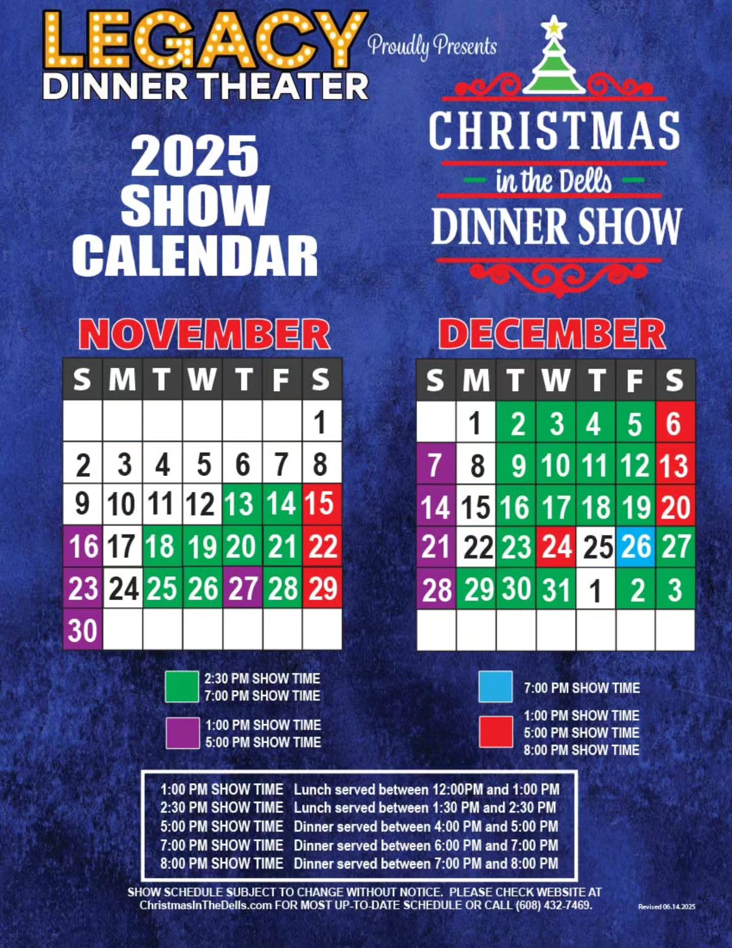 Legacy Dinner Theater presents the largest Christmas Show in Wisconsin with the Christmas in the Dells Dinner Show!