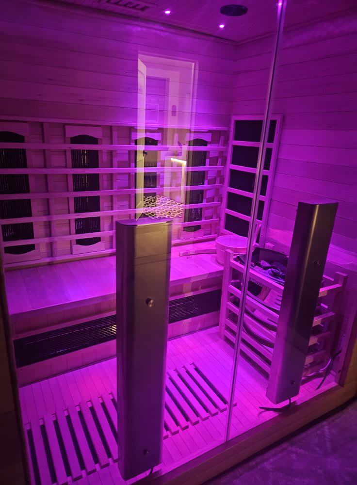 One to two person use of the Sauna and Cold Plunge. Towels will be provided.