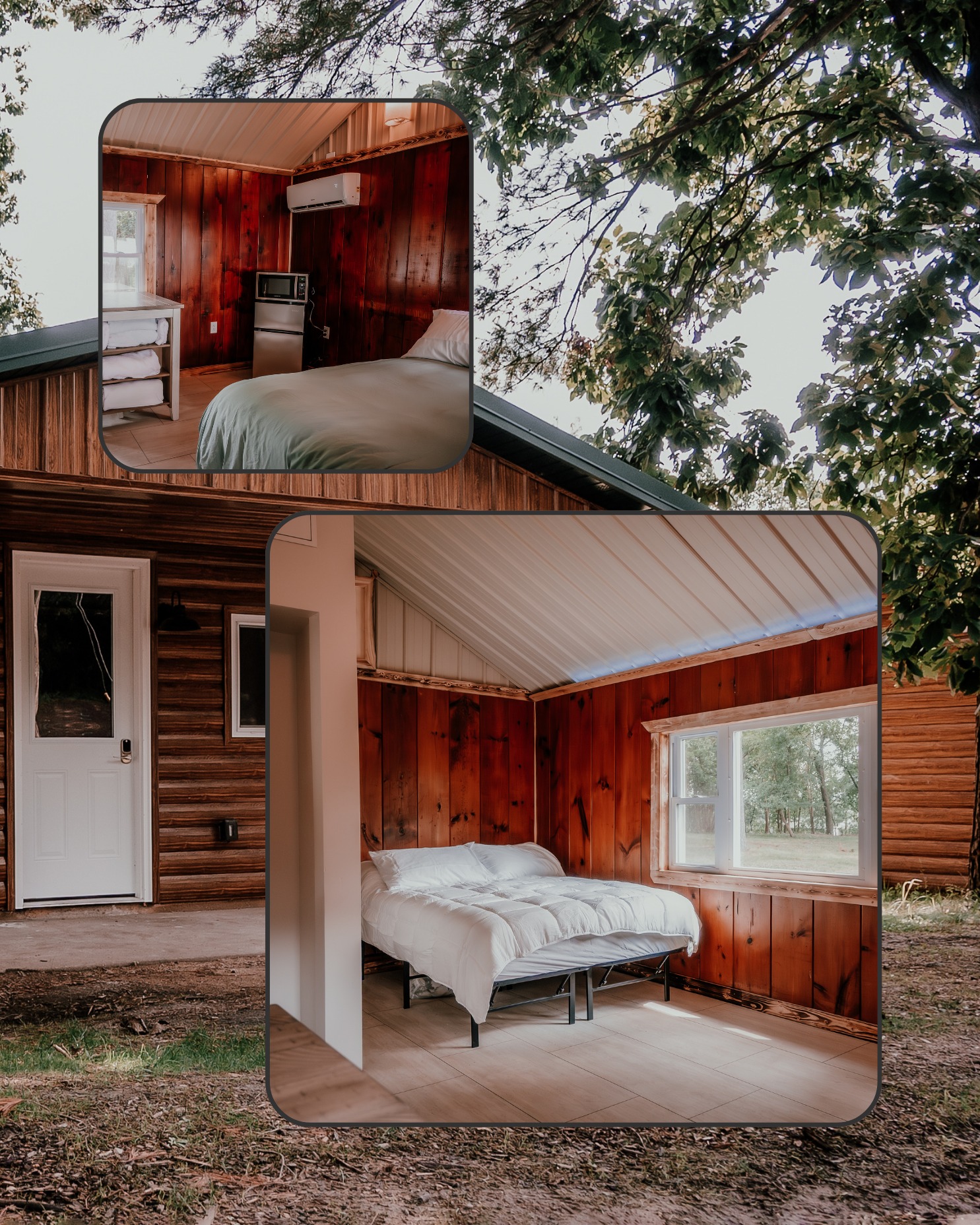 One three-night stay in Cabin 5, which features a front porch, queen size bed and pull-out couch.